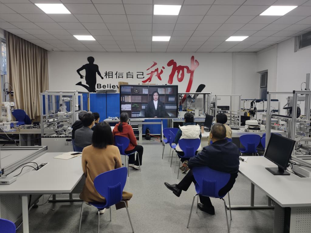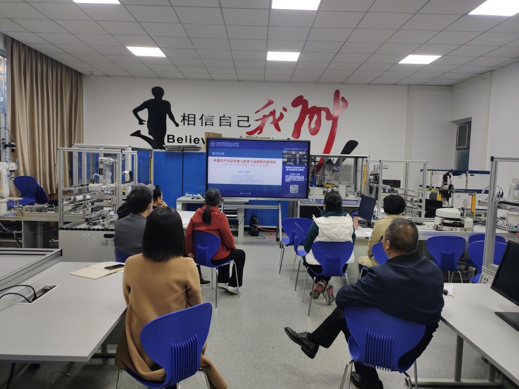 为深入学习贯彻党的十九届六中全会精神,2021年11月18日(周四)上午10:00,智能制造学院第二教师党支部在支部书记楚雪平同志的组织下,在机电实训楼113集中观看由全国干部教育培训浙江大学基地、浙江大学继续教育学院推出的“名师系列公益直播讲座”栏目。