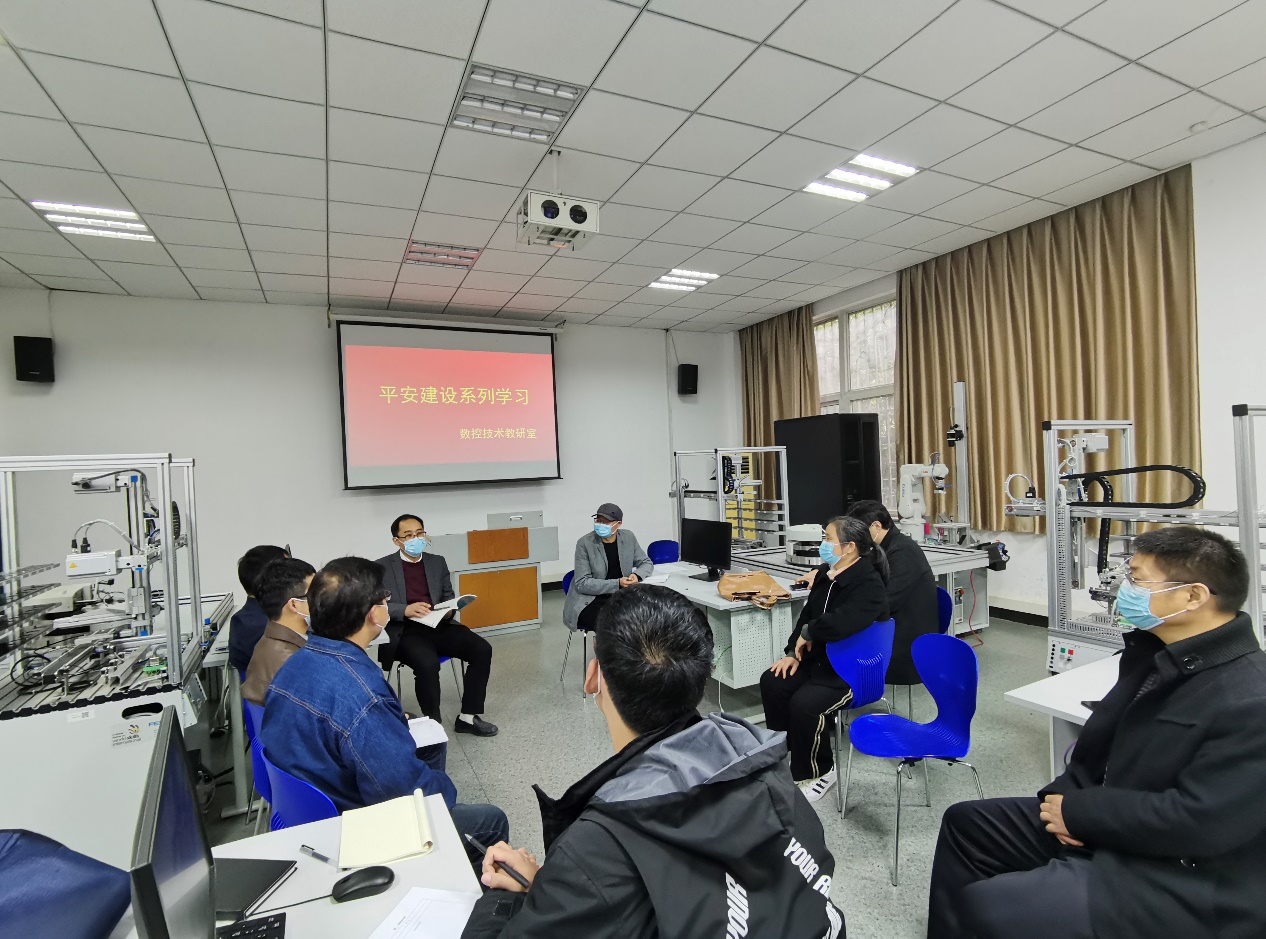 为深入贯彻落实全省平安建设工作会议精神,进一步做好全省人力资源社会保障系统平安建设宣传工作,根据省平安办《关于开展平安河南建设宣传工作的通知》要求,参照省人社厅《2021 年平安建设宣传工作方案》。2021年10月25日,结合我院实际,各个教研室开展组织会议,由教研室主任及其他成员在实训室展开“平安建设系列学习”会议。