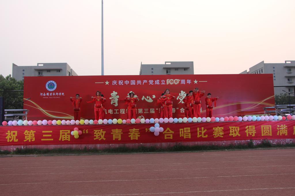 为庆祝中国共产党建党100周年,传承红色基因,讴歌伟大新时代,激发师生的爱党爱国爱社会主义情怀,展现师生朝气蓬勃健康向上的精神风貌,在"七一"建党节来临之际,机电工程学院于6月10日晚在学校体育场舞台举办了"青春心向党"第三届"致青春"合唱比赛,机电工程学院党总支书记袁世先、党总支副书记赵军华和全院专兼职辅导员老师出席本活动,共有18个班级690名青年同学参加本次合唱比赛。