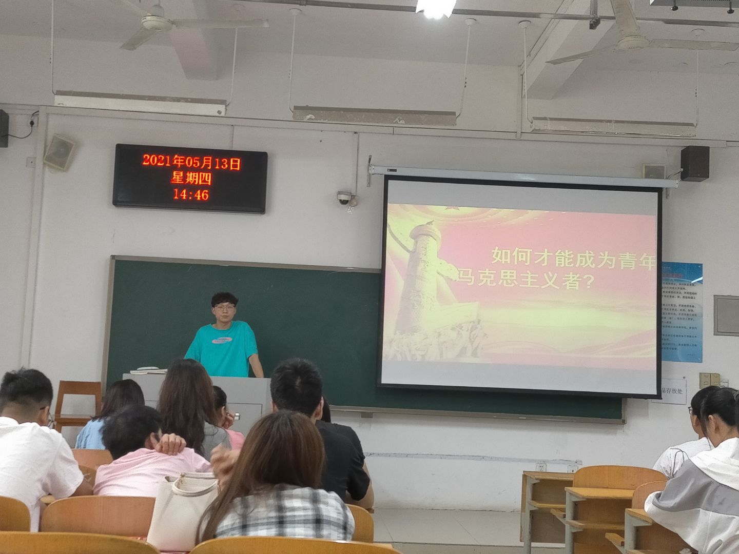会议由团总支副书记郑子龙同学主持,主讲人从理论方面讲述了什么是青年马克思主义培养工程及培养对象,大致介绍了青马工程的培养内容,并且对如何做一名合格的青年马克思主义者给予了建议与期望。