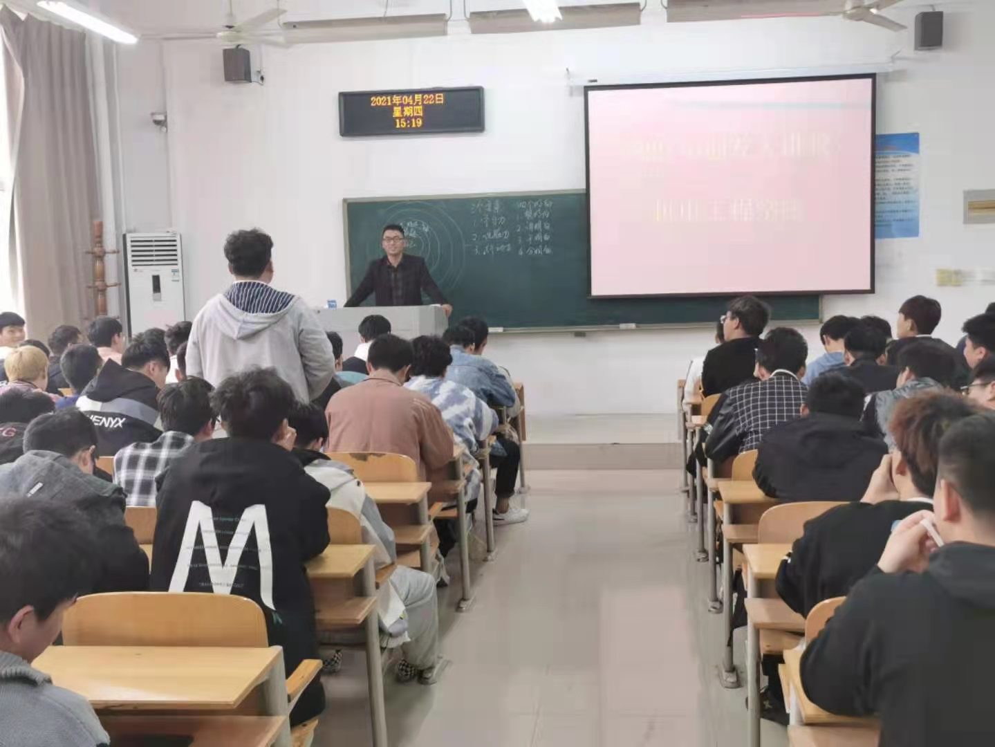 4月22日下午2点半,机电工程学院4月份创友大讲堂在明德楼2106教室如期举行,学院03届校友、郑州颖宇机械设备有限公司总经理王波涛应邀为120余名20级学生代表做了以《敬天问道,修己助人》为主题的讲座。