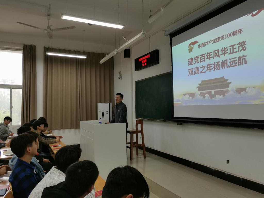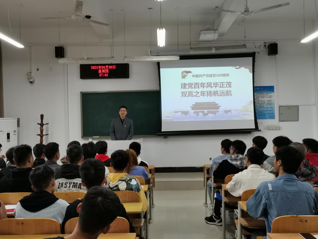 2021年4月8日下午,机电工程学院党总支副书记赵军华在明爱楼4208教室为本期78名入党积极分子开展了题为《建党百年风华正茂,双高之年扬帆远航》的专题讲座。