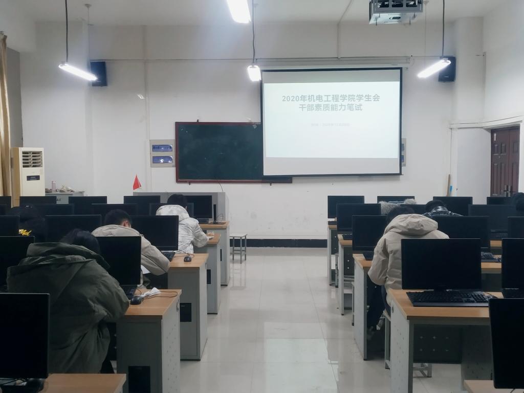 为深入学习贯彻习近平新时代中国特色社会主义思想,培养德智体美劳全面发展的社会主义建设者和接班人,落实团中央关于学生会干部素质化、能力化培养,切实增强学生干部的理论素养和履职本领,机电工程学院于12月29日晚在笃行楼220教室,举办首届学生会干部素质能力笔试大赛,共19人参加,于飞老师作为监考出席活动。