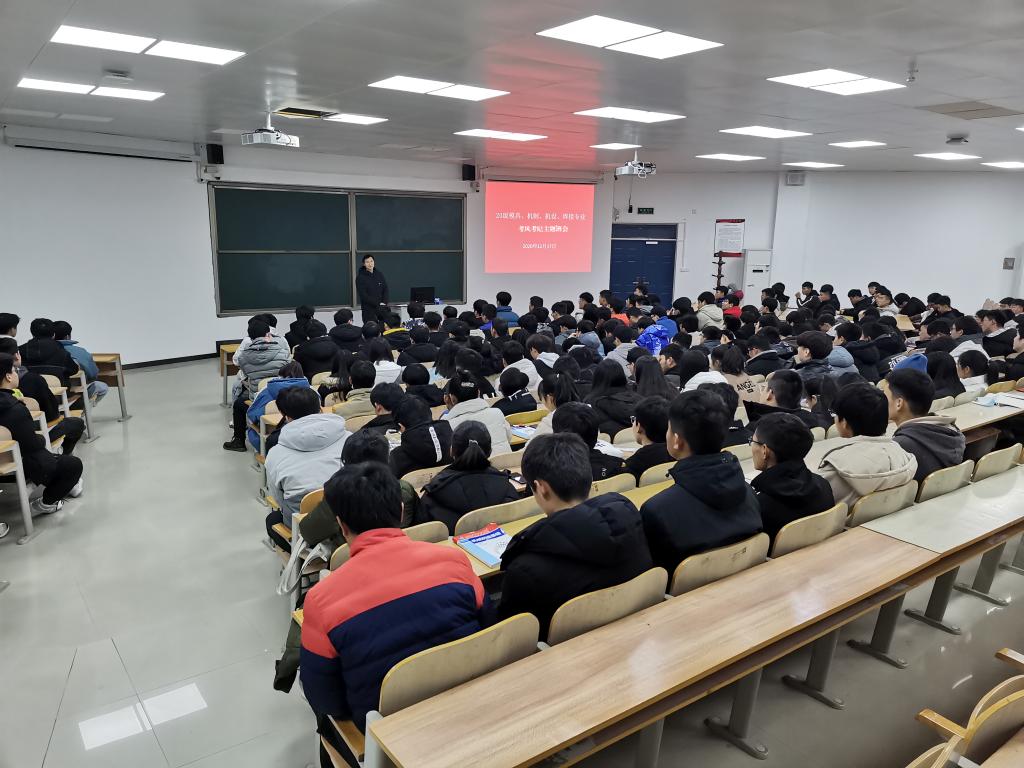 12月17日下午2020级模具、机制、机设、焊接四个专业共计289人,在3312教室召开第十五周主题班会,会议由于飞老师主持。