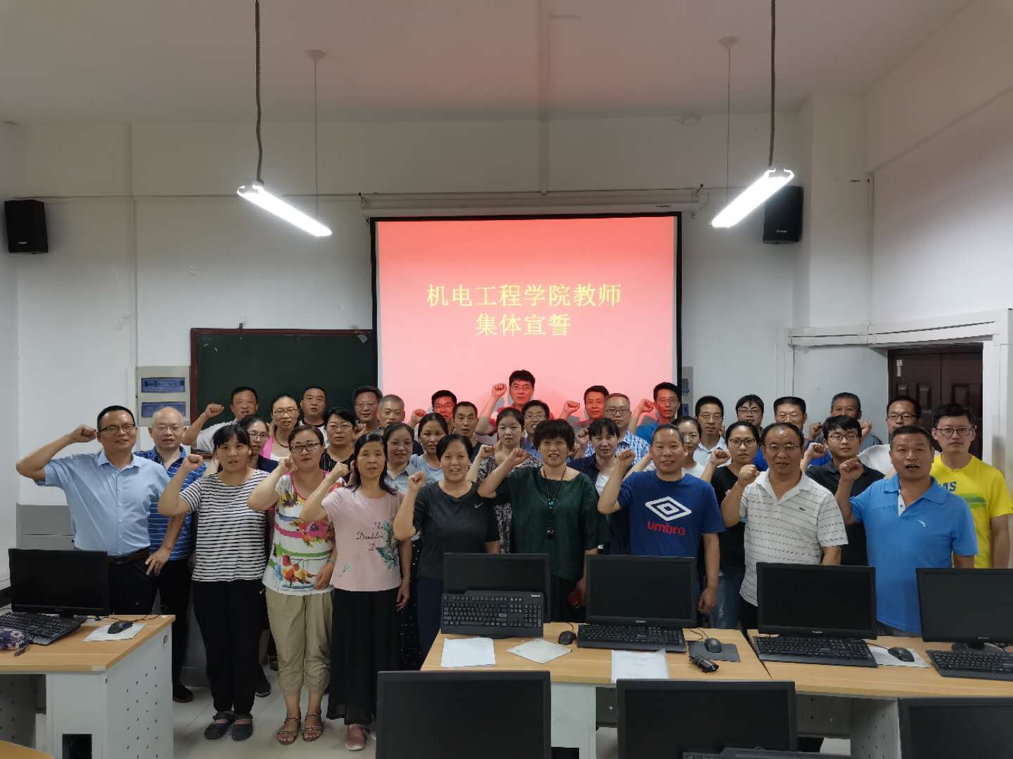 袁书记首先代表班子成员为全体教职工送上美好的节日祝福。随后,全体与会人员庄严肃立,在副院长王东辉的领誓下,重温教师誓词。“我志愿做一名光荣的人民教师,忠诚人民教育事业……”,铿锵有力的誓词,表达了全体教师不忘初心、砥砺前行、为神圣的教育事业奉献终生的决心和信心。