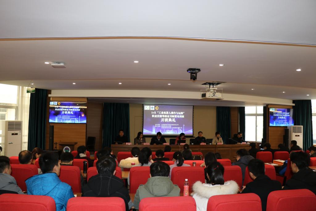 12月19日上午9点,1+X“工业机器人操作与运维”职业技能等级证书第14期师资培训班开班典礼在行政楼238室隆重举行。北京新奥时代科技有限公司董事龚玉涵,北京华航唯实机器人科技股份有限公司总经理刘新祥、营销总监柴华,教务处处长李小强,机电学院院长王美姣,教务处副处长王莉娜,综合实训中心副主任梁保然,机电学院副院长王东辉以及来自全国各地近40名骨干教师出席典礼。