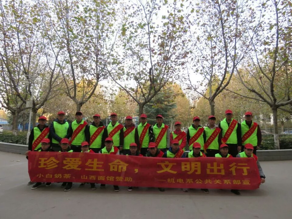 2017年12月3日上午,机电工程系公共关系部蒲公英社会实践小组在博学路文苑北路交叉口举办第五届“关爱生命、文明出行”活动。