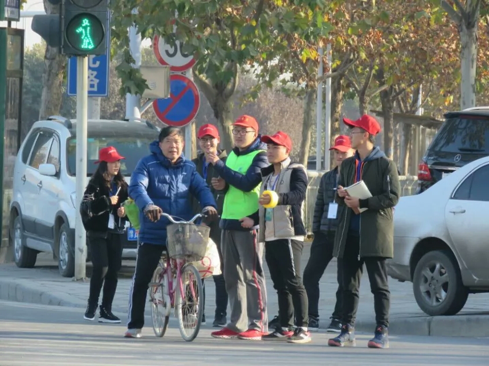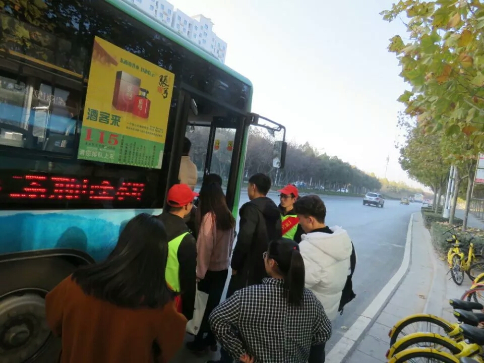 作为本学期学生社会实践活动一部分,同学们热情高涨,在十字路口、在公交站牌等自己分的岗位中,指挥路人和周边高校学生有序排队上公交车和走斑马线,增强交通安全意识。
