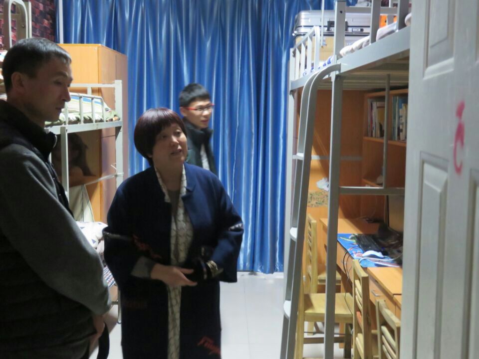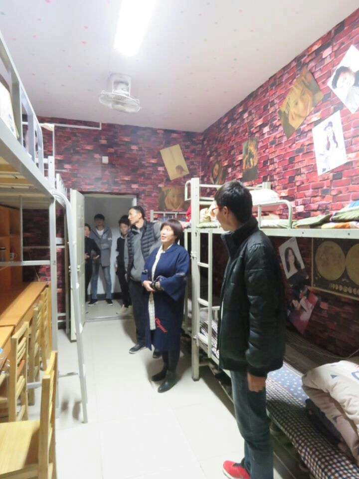 11月16日中午,系党总支书记袁世先带领大一辅导员老师、系学生会成员深入学生宿舍检查文明建设,查看学院为每个学生宿舍建设“河职宿舍小书架”的情况,并参观了我系荣获“宿舍设计”大赛获奖宿舍。