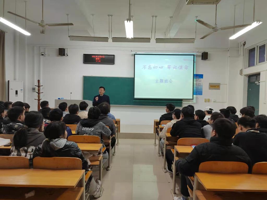 主题班会上,赵书记与同学们一起回忆了40年前他的大学生活,以成长导师的身份娓娓道来,与同学们分享了习近平总书记的一段话“只有回看走过的路、比较别人的路、远眺前行的路,弄清楚我们从哪儿来、往哪儿去,很多问题才能看得深、把得准。”他强调,同学们一定不要忘记“好好学习,做对国家对社会有用之才”的初心和使命,一定要做好对未来的规划,充分用好学校优质的学习资源,努力学习、提升自我,在实现自己个人理想的同时为社会的进步、为人类的发展、为中华民族的伟大复兴贡献自己的力量。