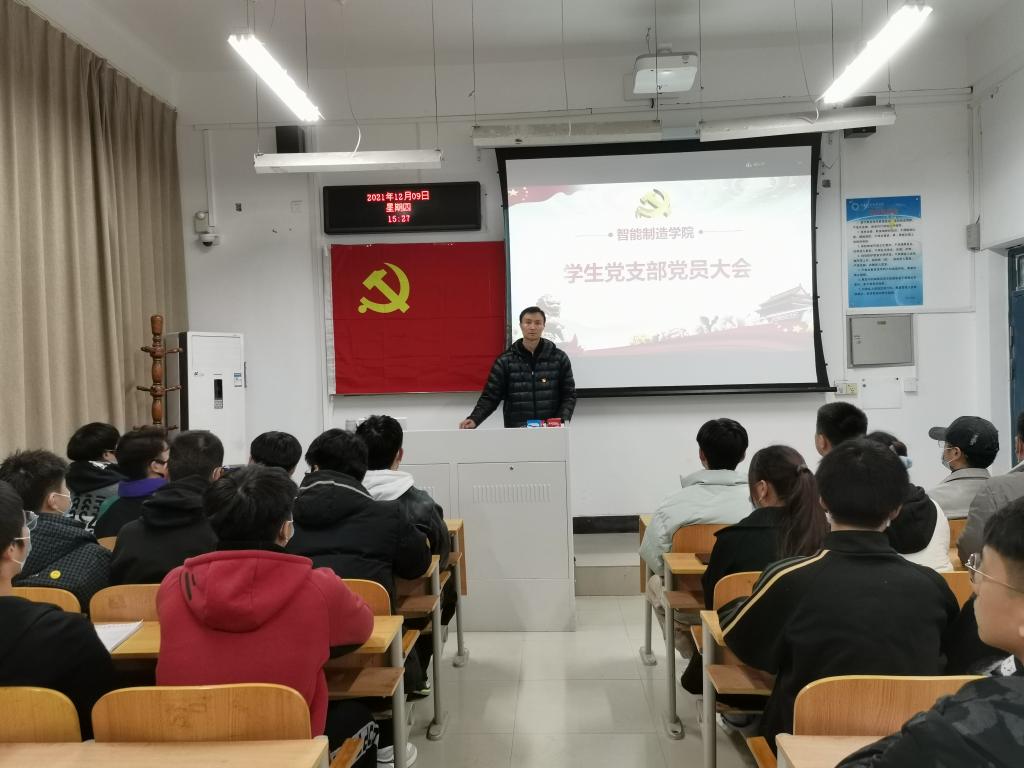 2021年11月25日14时,智能制造学院学生党支部通过线上钉钉软件和线下现场会召开了党员支部大会。本次会议的主要议题是讨论丰智博等34名同志成为预备党员的决议。大会应到党员75名,实到党员60名,15名党员因工作原因请假,符合会议要求。会议由党支部书记于飞主持。