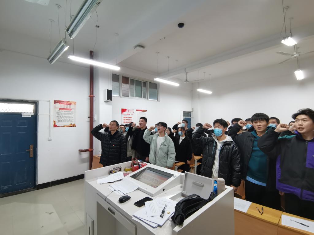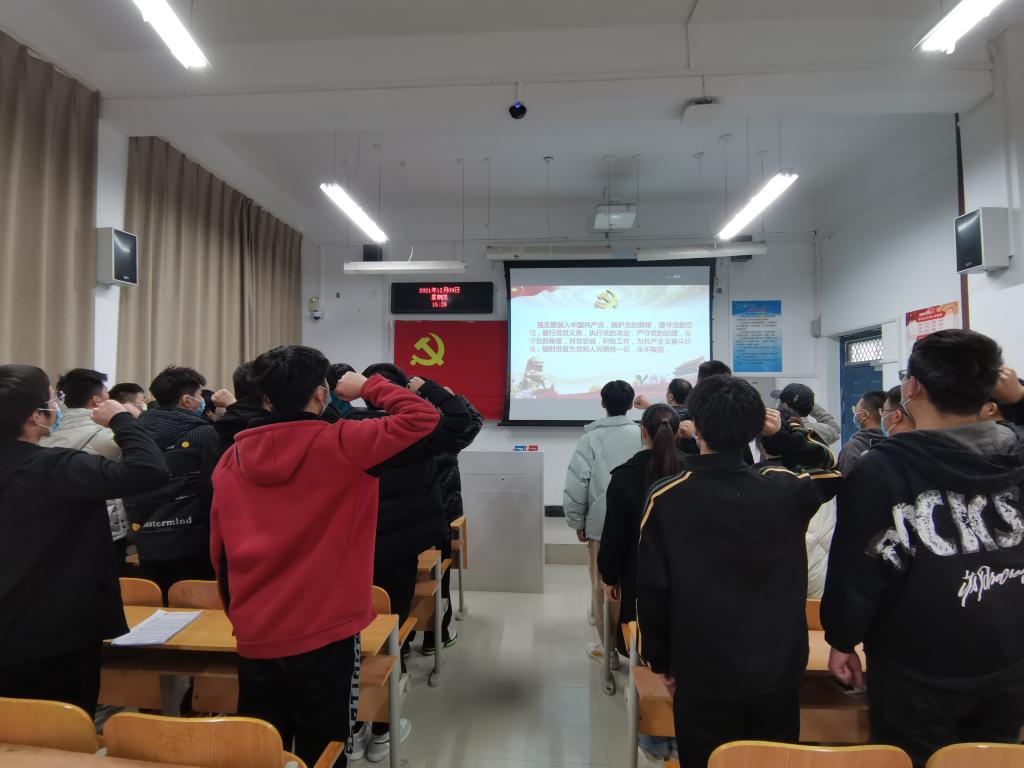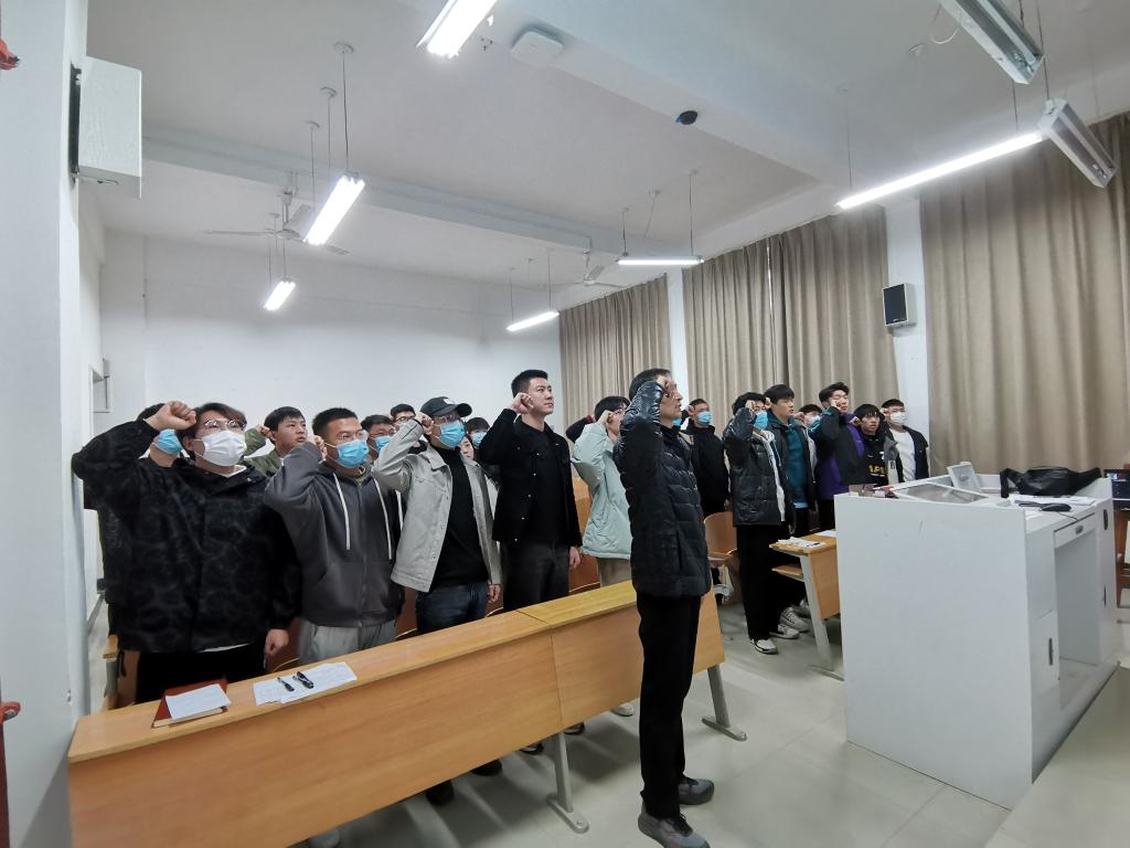 12月9日智能制造学院学生党支部在4201教室举行了庄严而隆重的新党员入党宣誓仪式。11名老党员和34名新发展的预备党员一起进行了宣誓;宣誓仪式由学生党支部书记于飞主持并领誓。