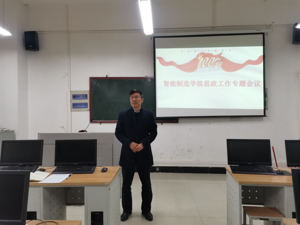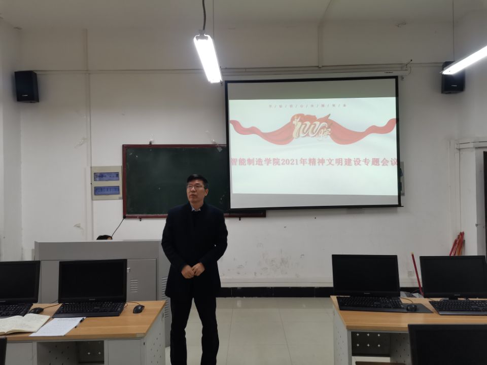 2021年10月21日下午,智能制造学院在笃行楼220室召开智能制造学院2021年下半年思政工作和精神文明建设专题会议。学院党总支书记赵军华主持会议,全体教职工出席。赵军华书记总结了智能制造学院上半年思政工作及精神文明建设工作的开展情况,对标《机电工程学院2021年思政工作和精神文明建设方案》,把上半年工作中的成绩与不足都深入剖析,对下半年工作的开展,做了周密部署。他指出,下半年的工作,一要突出思想引领,着力用新时代中国特色社会主义思想指导精神文明建设;二要围绕主题主线,着力推进核心价值观教育落细落实落小;三要加强教育引导,着力推进师德师风建设;四要创新活动载体,着力加强校园文化建设;五要弘扬志愿精神,着力促进学雷锋志愿服务常态化;六要突出工作重点,全力以赴争创省级文明单位。他强调,在下半年的思政工作和精神文明建设工作中, 一要提高站位,充分认识精神文明建设工作的重要性。做好新时代精神文明建设工作是落实立德树人根本任务的必然要求,是传播社会主义精神文明的必然要求,是推动学校事业发展的必然要求。二要把握重点,持续深化文明创建成果。要筑牢思想基础,持续抓好新时代中国特色社会主义思想学习宣传,擦亮精神文明建设的底色;要建好精神家园,弘扬学校精神、传承学校历史,打造文化传承与创新高地;三要真抓实干,推动学校精神文明建设工作再上新台阶。抓协调,推动形成工作合力;抓载体,项目化具体化推进;抓创新,增强工作针对性创造性;抓督查,推动工作落实。全体师生要以强烈的担当意识、奋发有为的精神状态、实事求是的工作作风,圆满完成《机电工程学院2021年思政工作和精神文明建设方案》中的安排,高标准、高质量推动思政工作和精神文明建设工作再创佳绩、再上新台阶。(供稿 樊林 审稿 张俊叶)