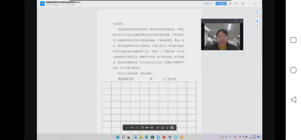 按照《河南职业技术学院关于加强奖助学金管理的通知》要求,我智能制造学院于12月4日至6日在各班召开紧急班会,组织全院同学认真学习《河南职业技术学院学生违纪处分实施细则》中第十一条第(三)项的内容。严格贯彻学校校规校级,对于侵占或抽取学生奖助学金、困难学生补助、勤工助学补助、助学贷款者严肃处理;对学生干部加强管理、广泛宣传,严禁出现学生干部抽取奖助学金等各类资金的现象,严禁请客、聚餐、送礼。班会结束后,我院辅导员老师组织全体同学在告知书上签字。(供稿 朱宇 审稿 张俊叶)