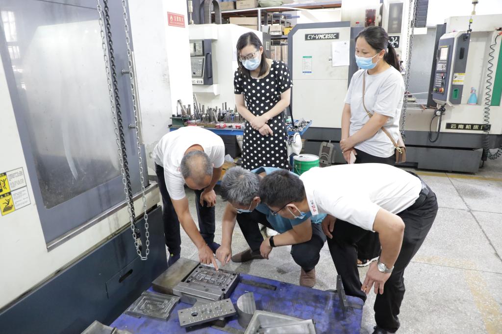 2022年8月24日,智能制造学院党总支副书记张俊叶、模具教研室主任彭伟、辅导员黄金磊、樊林一行四人赴管城区金岱工业园区开展创新创业教育调研。郑州天凯机械设备有限公司总经理贾红超、郑州颖宇机械设备有限公司总经理王波涛热情接待了张书记一行。