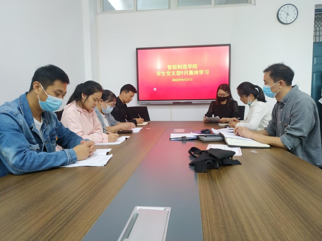 按照党支部学习计划安排,学生党支部于9月21日开展本月集体学习,会议由党支部书记于飞主持。
