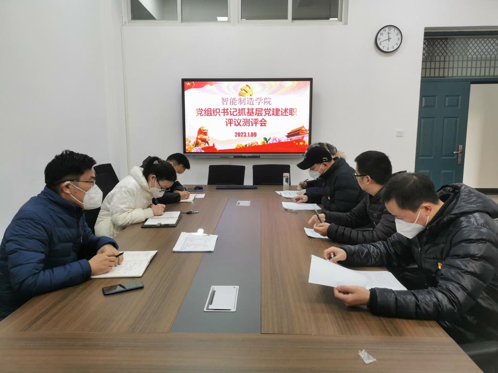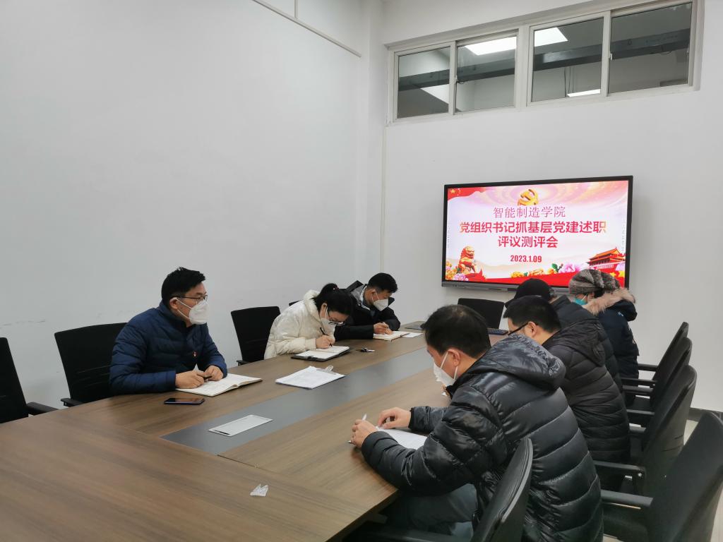 2023年1月9日下午,智能制造学院党总支在机电楼302东会议室召开2022年度党组织书记抓党建述职评议考核工作会议。党总支书记赵军华主持会议并讲话,党总支副书记张俊叶、组织员黄金磊和4名党支部书记参加。