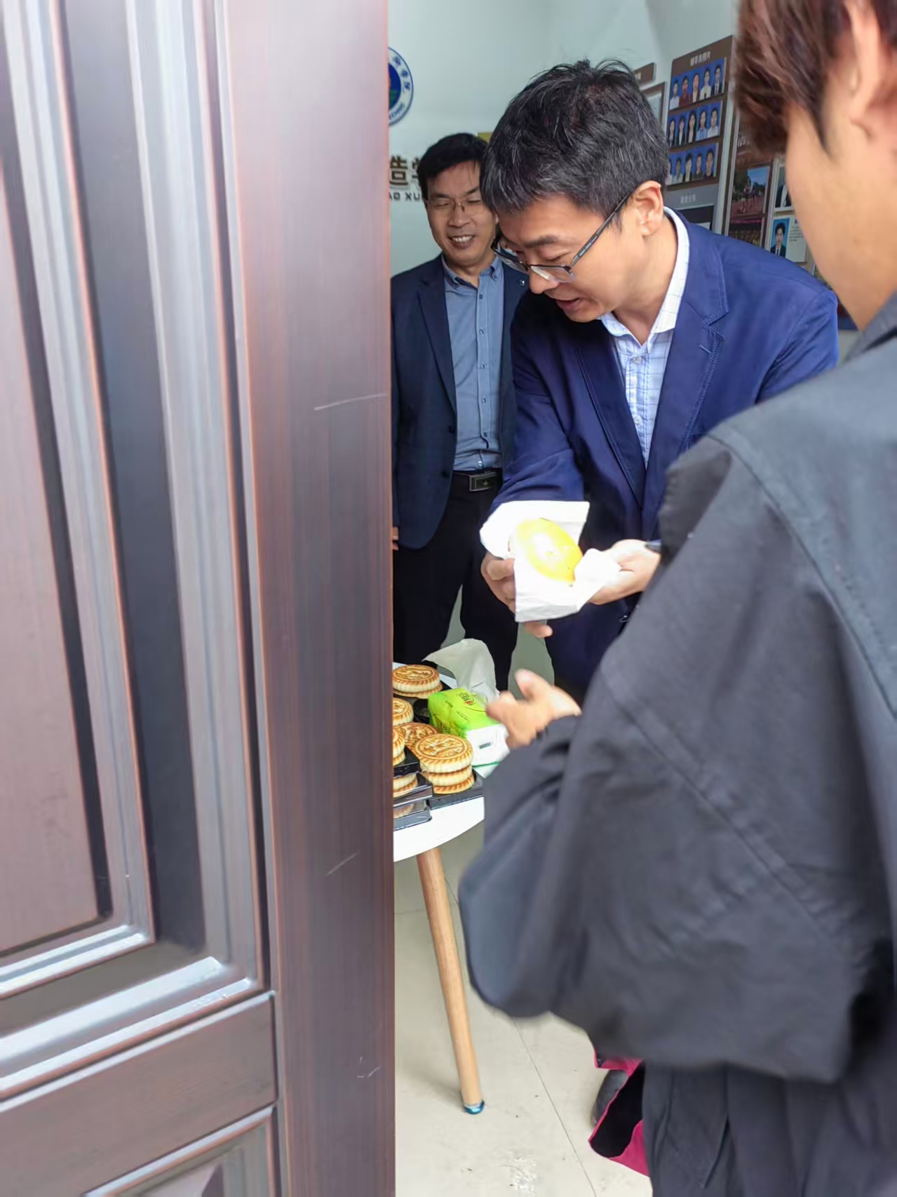 学院特意安排老师冒雨前往超市,精心挑选中秋月饼。发放现场温馨而有序。尽管窗外细雨蒙蒙,一站式服务社区内却其乐融融。学院党总支书记姚晓辉亲自将一块块儿香酥可口的月饼递到学生手中,祝愿同学们在学校也能度过一个快乐、充实的中秋佳节。同学们自觉排队,依次领取,脸上洋溢着惊喜与感动的笑容。