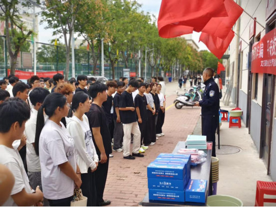 活动中,派出所民警汤其彬警官结合案例给同学们进行了“防诈”专题教育,和文苑路社区工作人员一起为学生精心准备了纪念品,鼓励学生学习、传播防骗知识。活动现场,志愿者引导领取资料和互动,营造活跃宣传氛围。