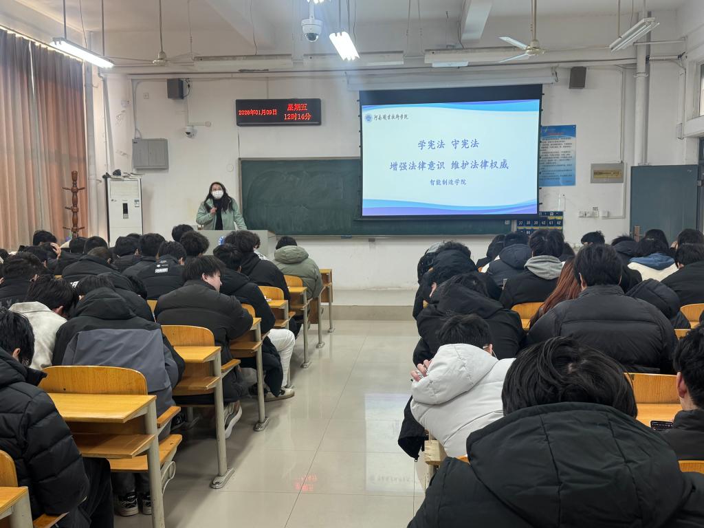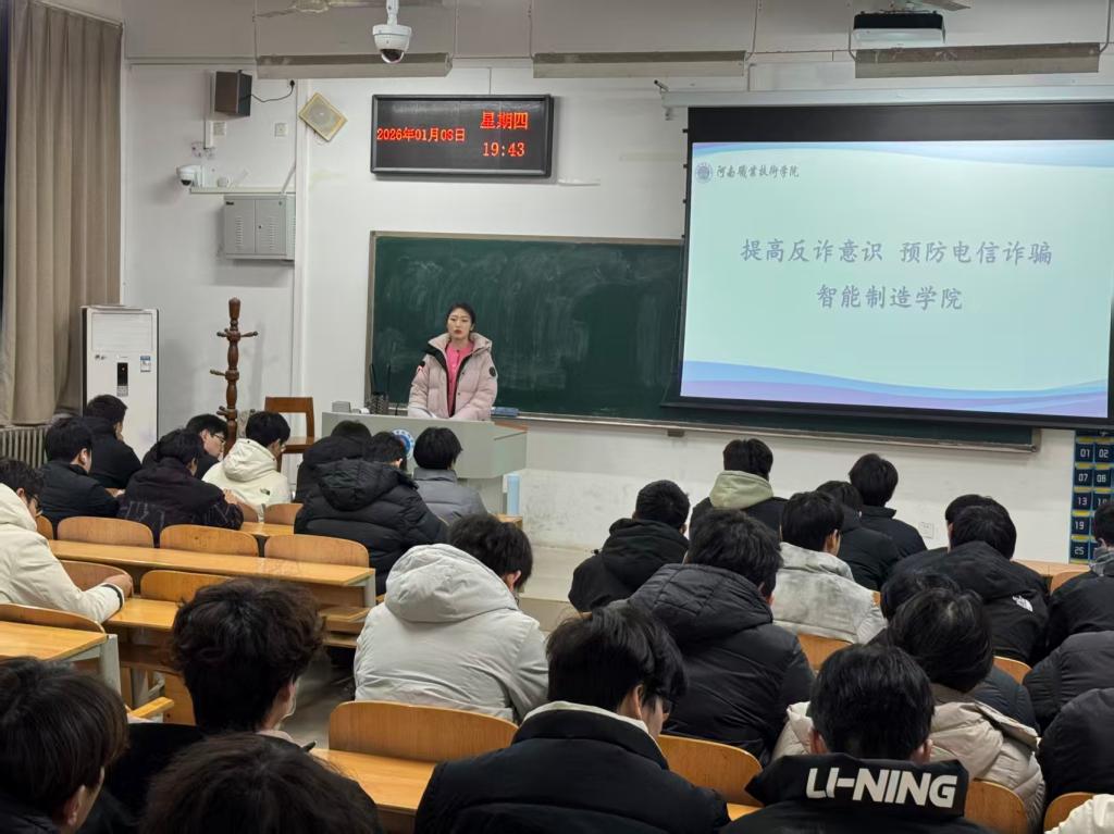 为深入推进法治校园建设,切实增强学生法治观念与安全防范能力,护航青年学子健康成长,2026年1月初,智能制造学院精准聚焦学生成长关键需求,接连开展反诈防骗、文明上网、宪法学习三大主题法制宣传教育活动,以沉浸式、针对性的普法课堂,为全院学生筑牢法治安全防线。